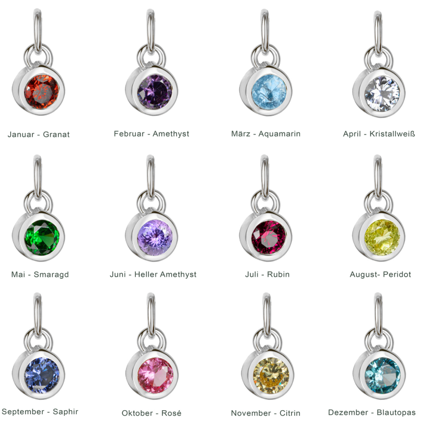 Anhänger Geburtssteine / Monatssteine – 925er Silber, nachhaltig gefertigt