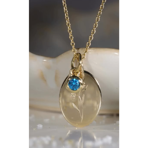 Filigraner Anhänger mit funkelndem Zirkonia als Geburts- oder Monatsstein. Perfekt personalisierbar und nachhaltig aus recyceltem Silber hergestellt.