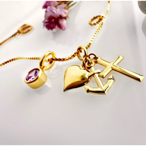 Ein zarter, edler Anhänger, der die drei wichtigsten Werte des Lebens vereint: Glaube, Liebe und Hoffnung. Gefertigt aus hochwertigem 925er Sterlingsilber und veredelt mit 18 Karat Vergoldung, ist dieses Schmuckstück ein stilvoller Begleiter für jeden Tag.