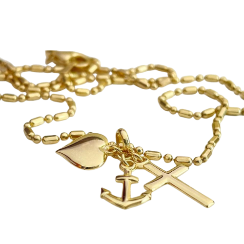 Symbolträchtiger Dreieranhänger: Herz, Anker und Kreuz