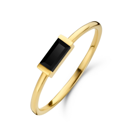 Damenring mit Spinell schwarz – 925 Sterling Silber, vergoldet