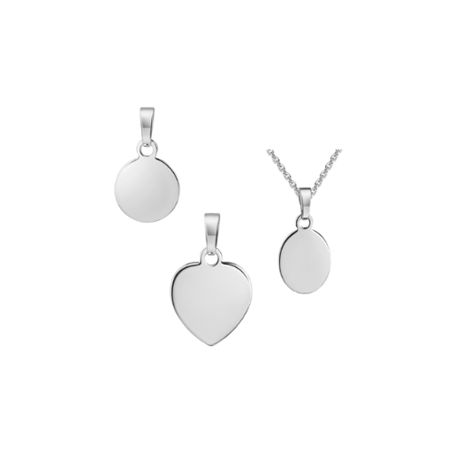 Gravurplatten aus 925er Silber – Herz, rund und rechteckig