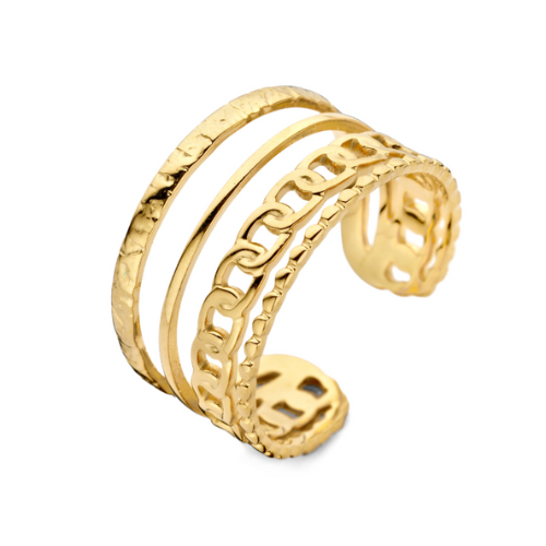 Lovebird Damenring Edelstahl – 4-reihig, 11 mm breit, Ø Gewicht 2,10 g, Gold- oder Silberfarbe, inkl. Geschenkbox