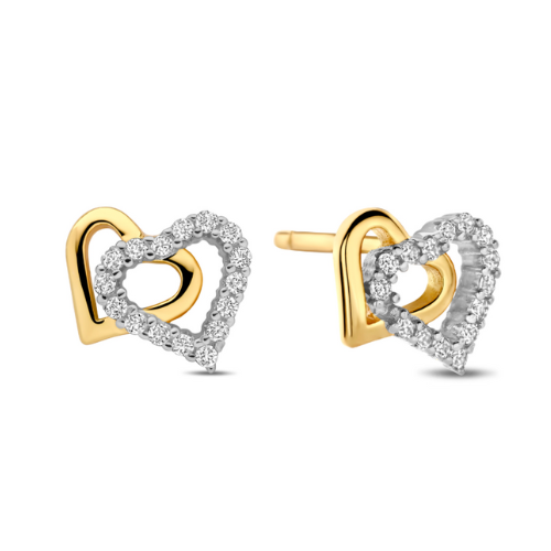Ohrstecker Herzen 32 Zirkonia Damen Echt Silber 925/000, vergoldet